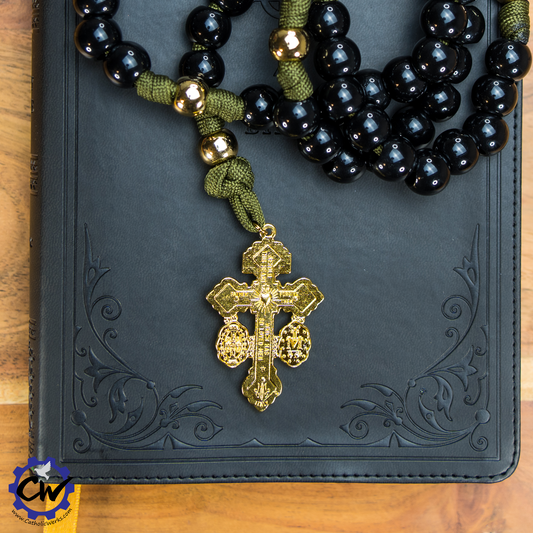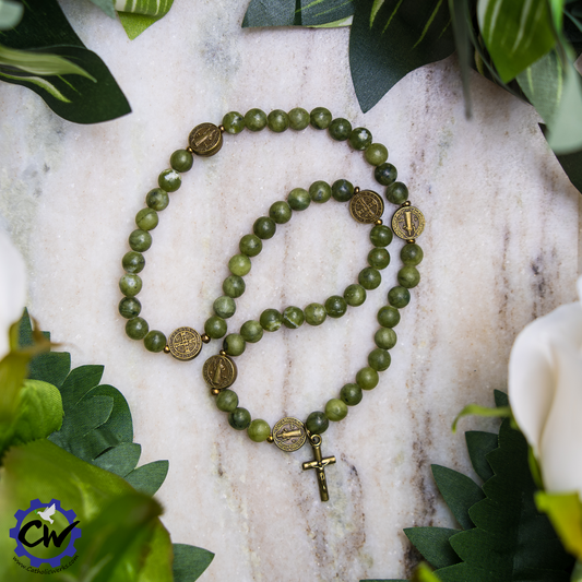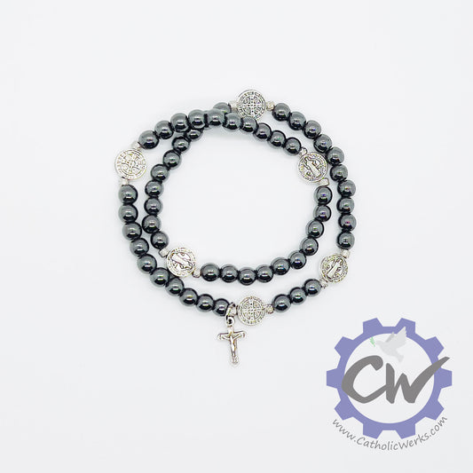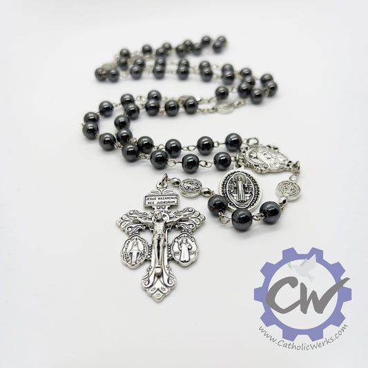 Immaculate Heart of Mary and St. Benedict Hematite Rosary