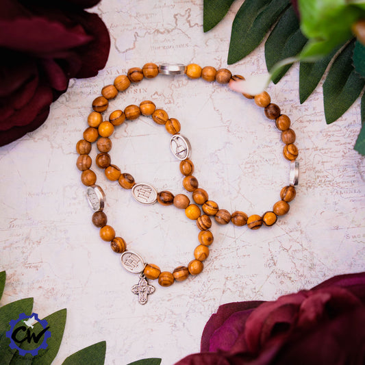 Holy Land Olive Wood Stretch Rosary Bracelet