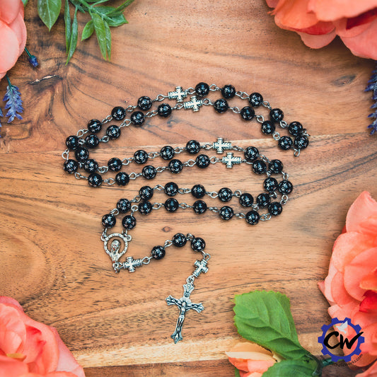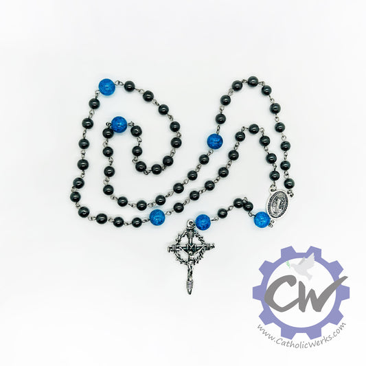 Immaculate Heart of Mary and St. Benedict Hematite Rosary